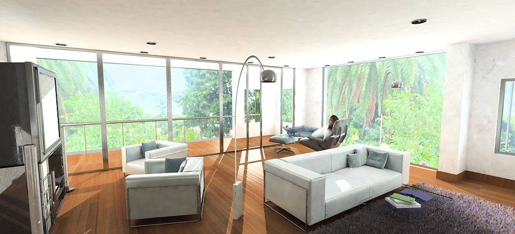 Hola a todos, aquí estoy publicando mi último interior, mi problem es que no puedo mostrar los reflejos en los vidrios, se complica como mostrar el fondo y los reflejos sin opacar el fondo, ya que, cuando hago una imagen con vidrios y una sin vidrio, la imagen con vidrio toda el fondo en el canal alpha entonces no se puede sacar el gris del fondo (en Hsv exponential).