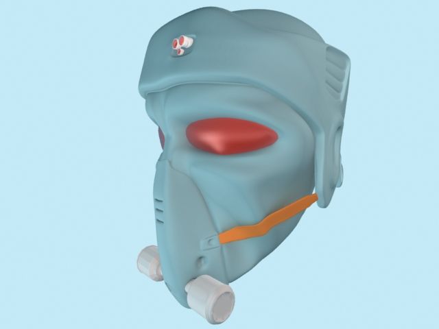 Me gusta mucho cómo te ha quedado, quizás la tira que sujeta la máscara debería parecer un poco más tirante (hay zonas en las que se ve tirante, pero otras en las que se ve pegada). No estaría de más que pusieses un cuello (o algo), para indicar que es un casco, porque casi parece la cabeza de un tío con gorro y máscara. Texturiza, porque te va a quedar muy chulo saludos de Drakken rotor.
