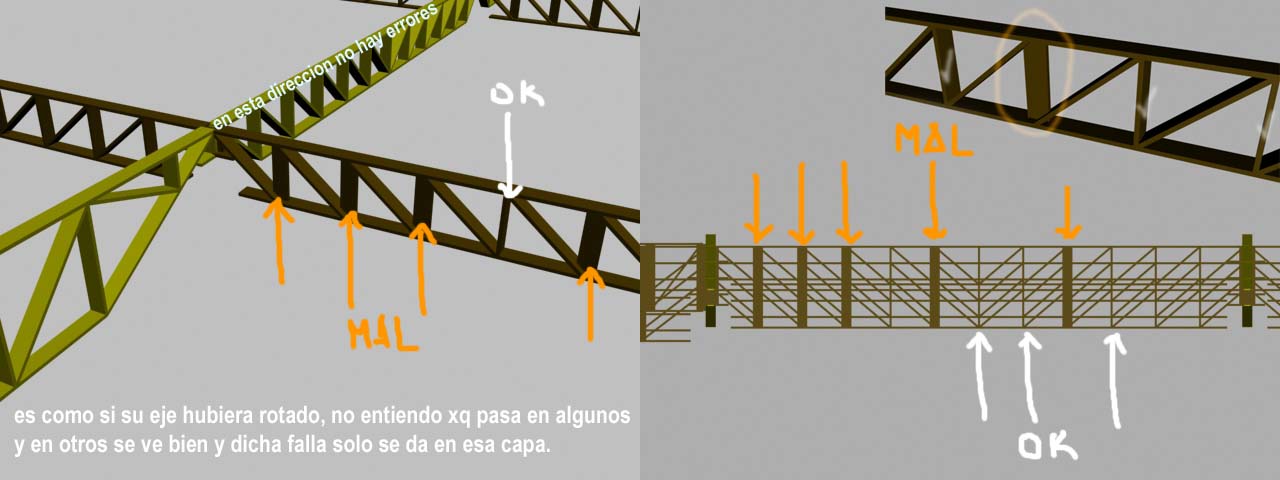 No encuentro la falla, o el error, al darle volumen rectangular a las líneas en 3dsmax, algunas líneas verticales como que se modifica su eje original y x ende su profundidad cambia x su ancho y viceversa.