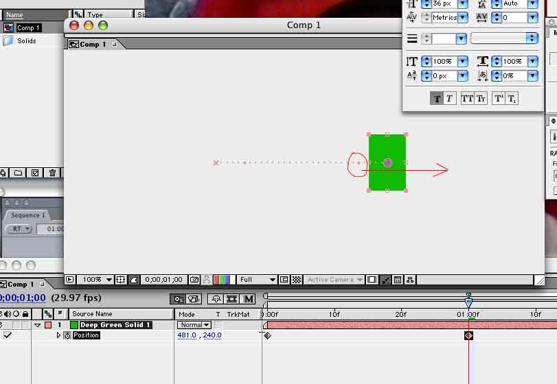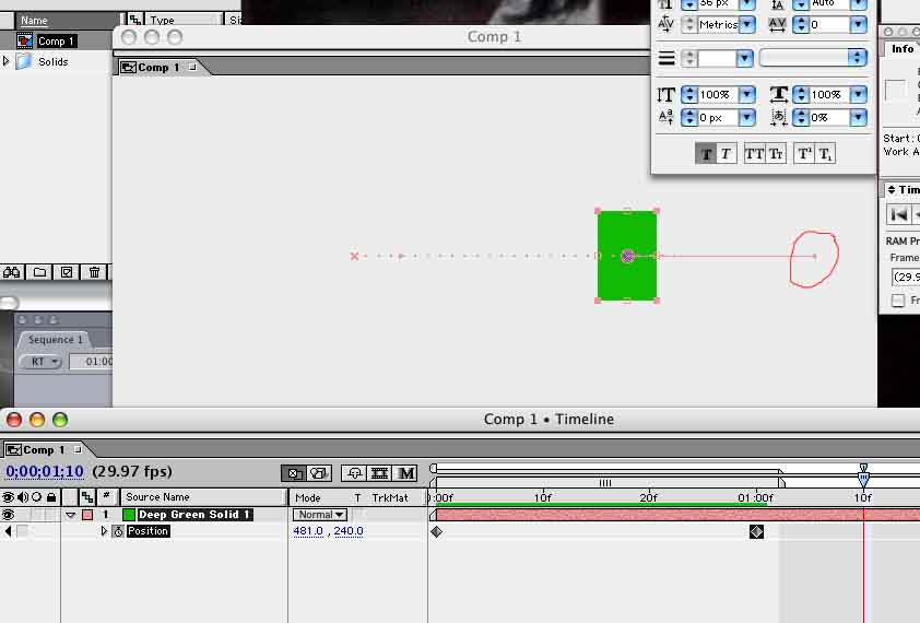 Quiero conseguir con sólo 2 keyframes que una capa se mueva de un punto a a un punto b haciendo un pequeño rebote al final. Es decir: la capa sale del punto a se pasa un poco del punto b y vuleve al punto b. Lo he intentado con el editor de gráficos, pero con la propiedad posición no lo consigo (si lo consigo con otras como escala).