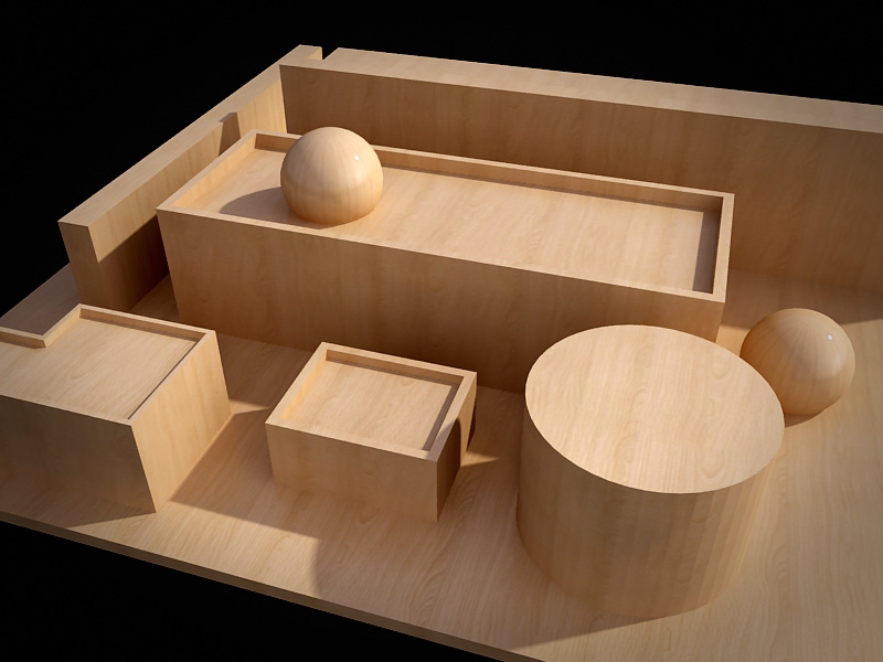 Aquí te dejo un enlace con varios renders en plan maqueta de madera de balsa con distintas configuraciones de iluminación. Incluso en algunas de ellas se explica el método utilizado: http://www.chaosgroup.com/forum/phpb...&highlight=wod.