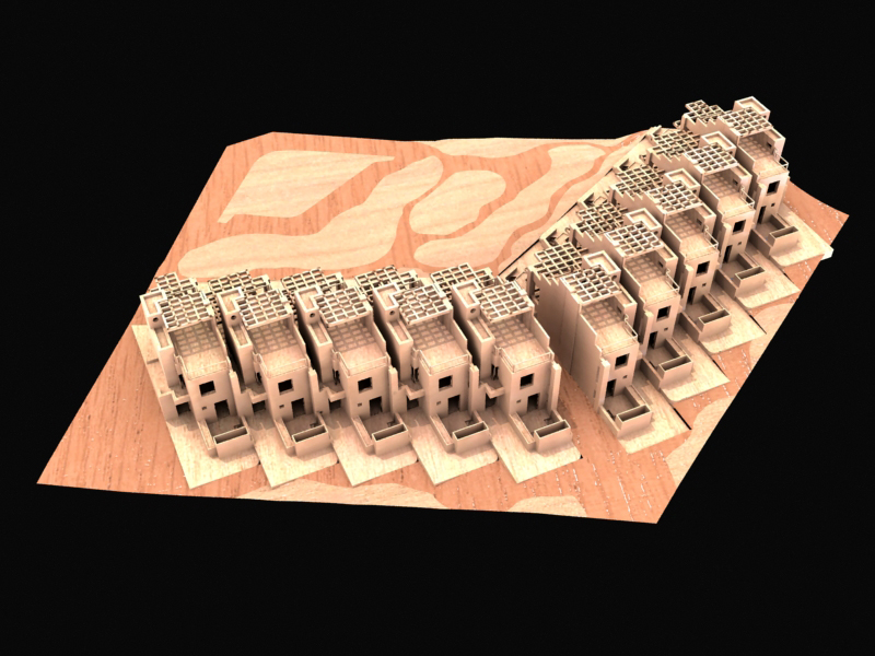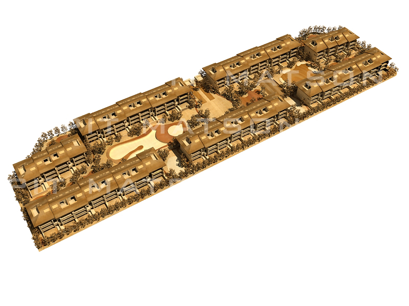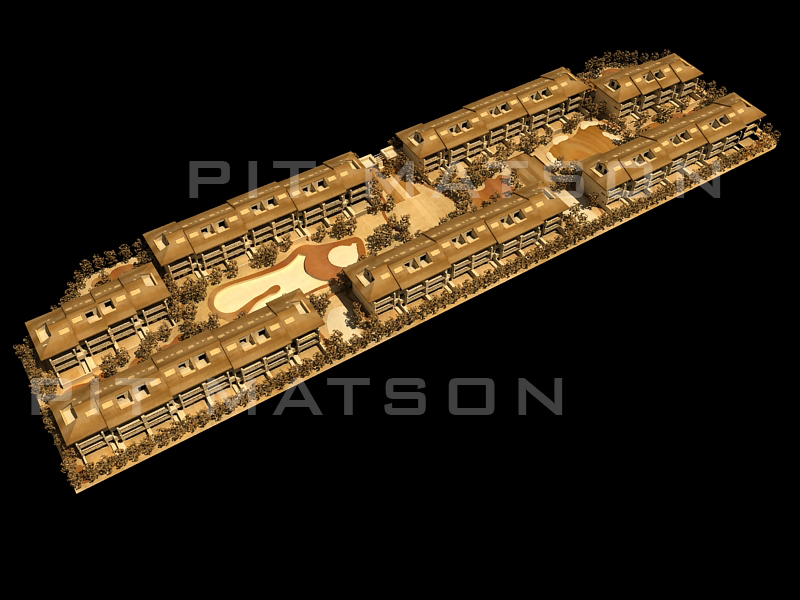 Me gusta cómo te ha quedado la madera de los edificios, Pit, pero los árboles, cuando son de maquetas, aunque sean virtuales, me gustan más sencillos, como los de este render.