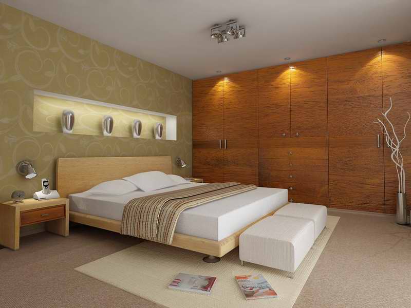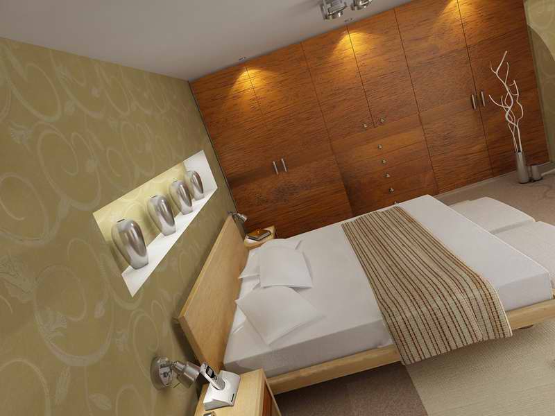 Lo único que veo así a bote pronto es que los halógenos del armario emiten luz, pero no están encendidos. Del mismo modo, no se entiende de dónde viene la luz en la repisa que hay encima de la cama, donde los jarrones. Imagino que debería ser de algo empotrado en ese trozo de pared, pero no hay nada dibujado. Saludos.