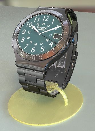 Hola. Estoy tratando de iluminar este reloj que he modelado, pero creo no le encuentro muy bien el puntillo. Esta es una muestra con calidad baja. Está iluminado con un HDRI para dar ambiente, un spot desde delante hacia la izquierda y una omni por detrás para dar un poco de contraluz. Sin embargo, algo falla, porque el metal sale más oscuro de lo que se ve en el editor de materiales, mientras que el plano de la esfera se ve un azul más claro, además, al ponerle el suelo, las caras que apuntan hacia abajo no tienen reflexión, pero si le quito el suelo perderá parte del efecto de GI, ¿no?