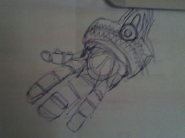 Gracias a todos tíos, multiforeando ein? Bueno, el tema es que, al guante de cuero le voy a dar un repaso, o sea que la haré de nuevo y el nuevo diseño es el sketch que está a la izquierda ese que e scomo el puño del destino de Hellboy, y bel título es un homenaje al gran y excelente emo.