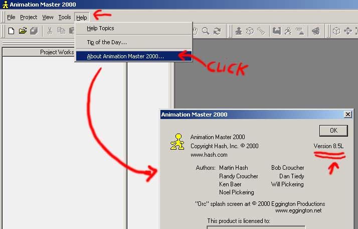 En el gráfico que te anexo abajo te indico donde ver la versión exacta del Animation Master, si tienes la 9.5m, puedes estar tranquilo y satisfecho, es una de las mejores (del 2002). Un saludo de Shazam, posdata: el Cinema 4d está muy bien para imágenes estáticas, pero sus nuevas herramientas de animación (antes apenas las había) aún no tienen la consistencia necesaria para un trabajo serio de producción. Seguro que lo mejoraran en próximas versiones.