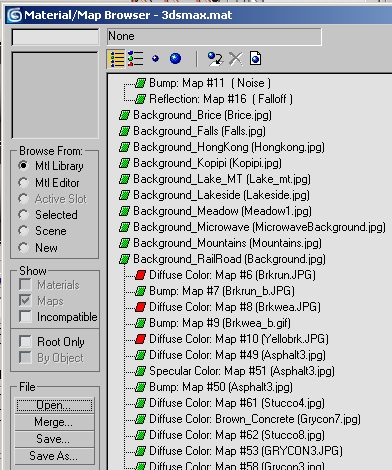Parece que Pepe busca esos materiales que venían por defecto en 3dsmax donde ya incluían el Bump, difuso, si no me equivocó en las nuevas versiones vienen en el segundo CD de instalación.