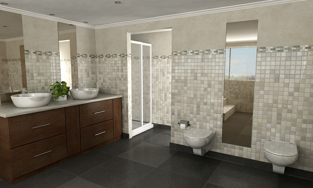 Modelé el baño a partir de algunas ideas que fui modificando hasta que me gustó la distribución y materiales. Está todo modelado desde cero excepto los sanitarios y los grifos.