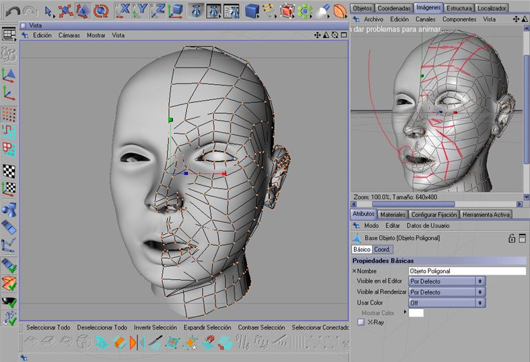 El modelo te recomiendo que le vayas relajando los vértices, no sé si esa función la trae el Cinema 4d, en 3ds Max se llama relax, y lo de los vértices que dice IkerClon. Pues eso, que tienen que estar más ordenados, y si la cara es relativamente limpia mientras menos vértices o polígonos pongas más suave quedará, posdata: una de las virtudes es el body Paint, aunque también se puede utilizar aparte (stand alone) esta sería mi segunda opción si el gp2 no es tan bueno, interesante ver a alguien por aquí con el Cinema 4d. Saludos.