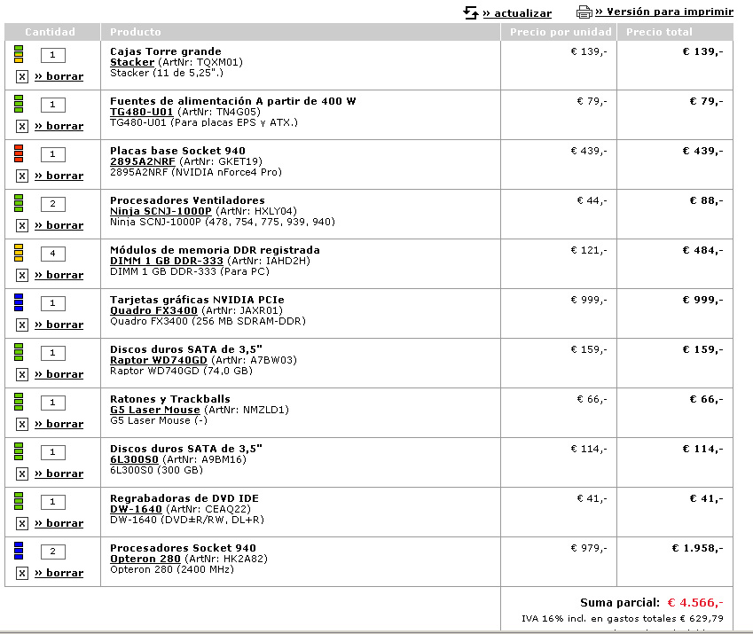 Bueno, el caso es que, ahora si, mi jefe esta caliente y dice que me va a comprar el equipo ya por fin. El caso es que he llamado a alternate, y el pive de asesoramiento técnico, me ha dicho que los Xeon son muchísimo mejores que los Opteron. Dice que hace un par de semanas, los de Pyro pillaron dos nuevos equipos y que eran Xeon o no sé que, el caso es que, ando muy perdido. También me ha dicho que pille una fuente de alimentación de 600w, que la de 480w se me quedaba corta.