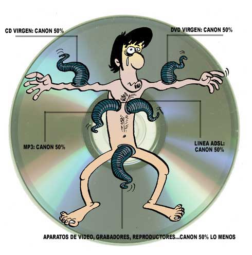 A mi esto del canon me suena como el impuesto adicional que pagamos en Galicia por la gasolina, para cubrir gastos de la seguridad social. Puede que esos impuestos estén bien en el fondo pero no en la forma, pues obliga a pagar a unos pocos para el beneficio de otros pocos. Como suelo decir yo o jugamos todos o pincho la pelota.