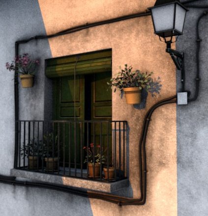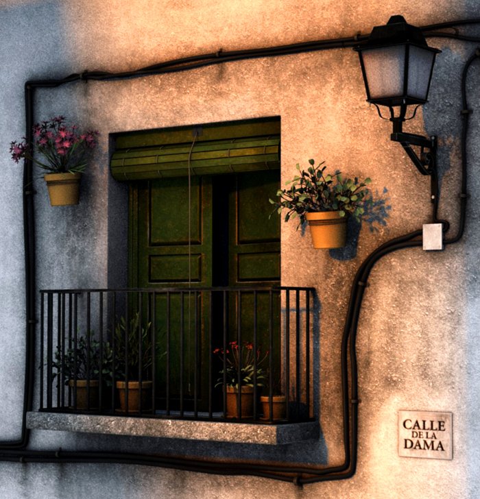 Cómo va eso? Ésta es una escena en la que llevo bastante tiempo. La finalidad era aprender lo que pudiera de texturizado, modelado (aunque todo es bastante sencillo) e iluminación, poco real.