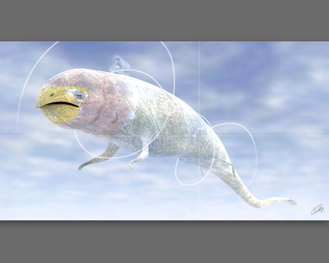 Hombre, a mí me había confundido el pájaro-cetáceo y su jinete. Porque sólo un descendiente de sirena sería capaz de dominar un cetáceo volador de esa forma, puesto que las sirenas son mitad mujer, mitad cetáceo (la cola de sirena es cola de delfín, no de pescado). Porque la sirena es un mamífero. ¿o es que, alguien ha visto agallas en una representación de sirena? ¿y ombligo? Pues tampoco. Como bien explicaba el trístemente fallecido cunqueiro, las sirenas no tienen ombligo, y como engendra de humano y pare es enorme misterio.