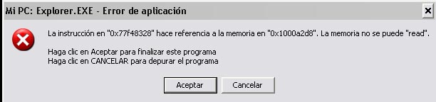 Hola a todos/as. Desde hace unos días el ordenador de mi curro me da un mensaje de error que no sé qué significa por lo cual no sé si debo preocuparme. Este mensaje solo aparece al cerrar una ventana cualquiera de Windows(XP) pero no con los programas.