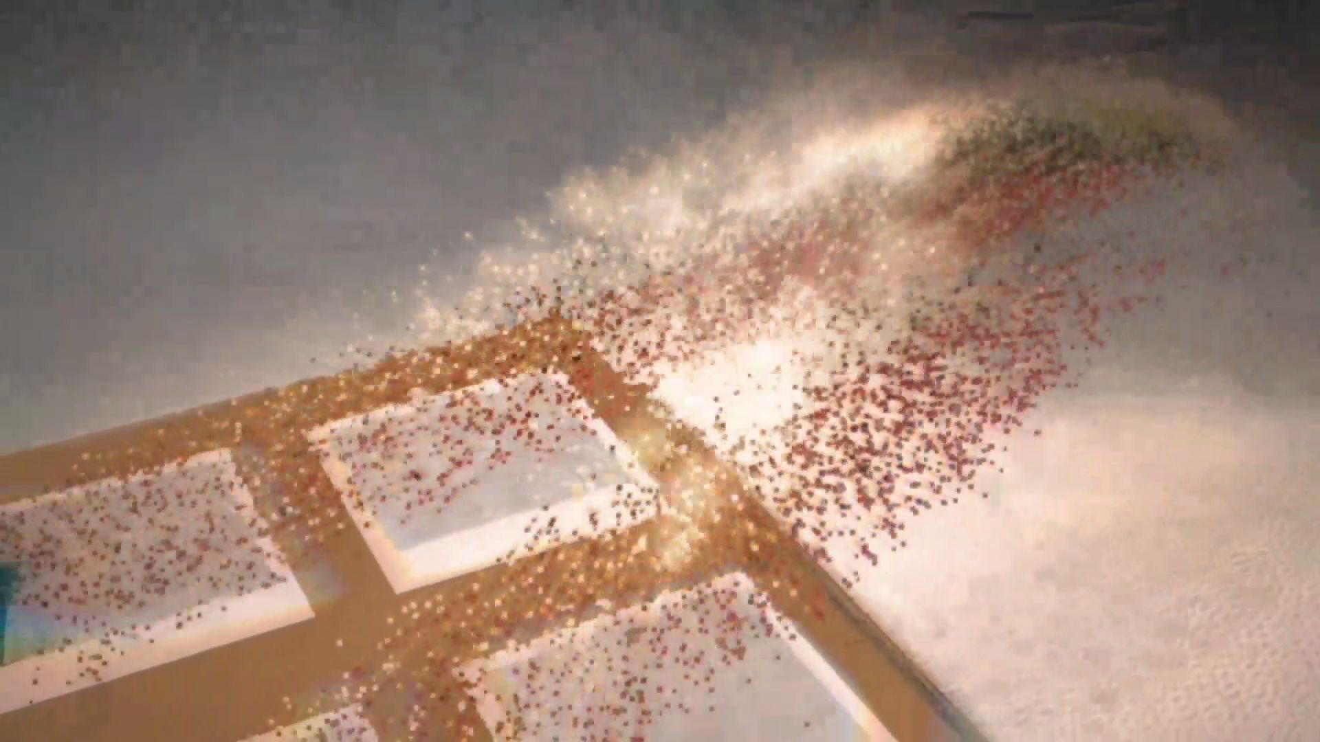 Usando SandBlaster de Digimation (un baby Thinking Particles) para convertir el centro de mesa en las polaroid del álbum.