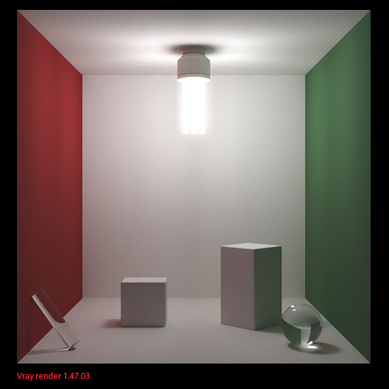 Además, si os fijaís en la esfera y las cáusticas que produce en el suelo se ve como Maxwell genera un destello a la izquierda que no está en la fotografía y que el render de Vray no tiene.