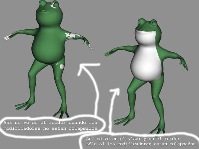 Hola a todos, trato de texturizar una rana, pero antes de eso le aplico gizmo de mapeado a caras seleccionadas para aplicar un material multisubobjeto, lo raro es que funciona en el visor, pero, en el render la textura sale toda distorsionada, sin embargo, si colapso los modificadores sale bien en el render ¿Qué podrá estar pasando?