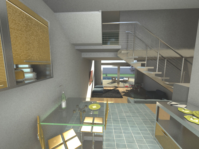Gracias por la sugerencia, me gusta más la luz de ahora, pero sigue sin convencerme algún material (sobre todo el de las sillas que no consigo que se iluminen de forma equilibrada con la escena) y tampoco sé muy bien porque le sale tanto grano a la imagen.