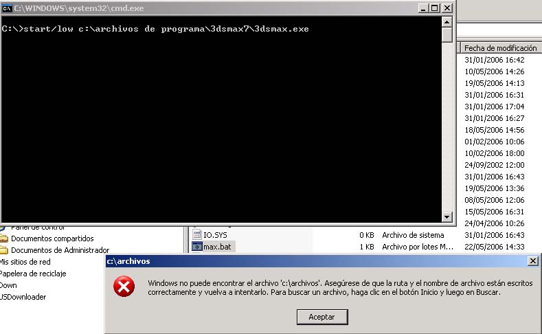 Escribí esto en el.bat. Start/low c:\archivos de programa\3dsmax7\3dsmax.exe. Y me da este error. Y la ruta esta correcta.