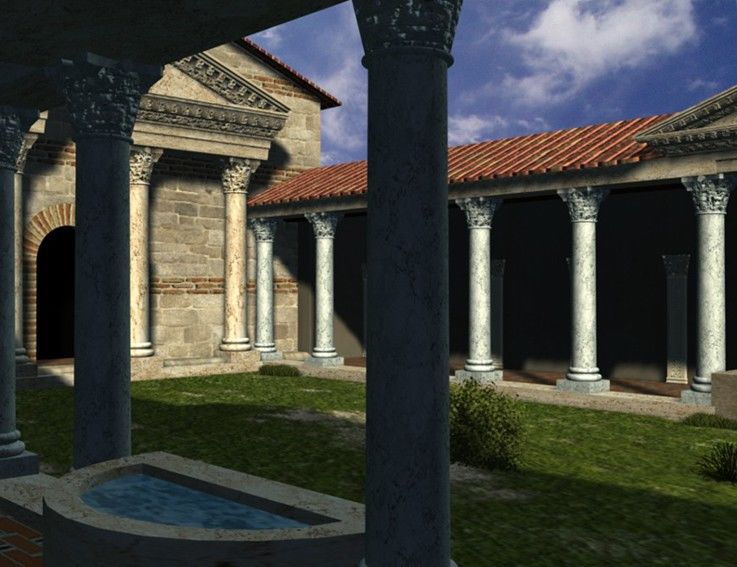 Pasa por la sección de motores de render e iluminación y le antiguos mensajes. Encontraras mucha información que podría ser de ayuda. Como ya han comentado, el uso de un motor de render podría darte más herramientas para conseguir una mejor iluminación, también te recomiendo que consigas el 3dsmax 5 o el Viz 4 (este último es preferible si trabajas con AutoCAD), ambos traen mejoras considerables con respecto al max 3, tu imagen está muy chula. Utiliza unas cuantas omnis para iluminar los pórticos, con un bajo multiplicador. Asegúrate de que la luz solar es de tipo direccional o, si es un foco o una omni, lo sitúas más lejos y aumenta el map size. En cuanto a la hierba, no estaría de más crear un camino o recorrido más gastado que salga de la puerta. Saludos de Drakken rotor.