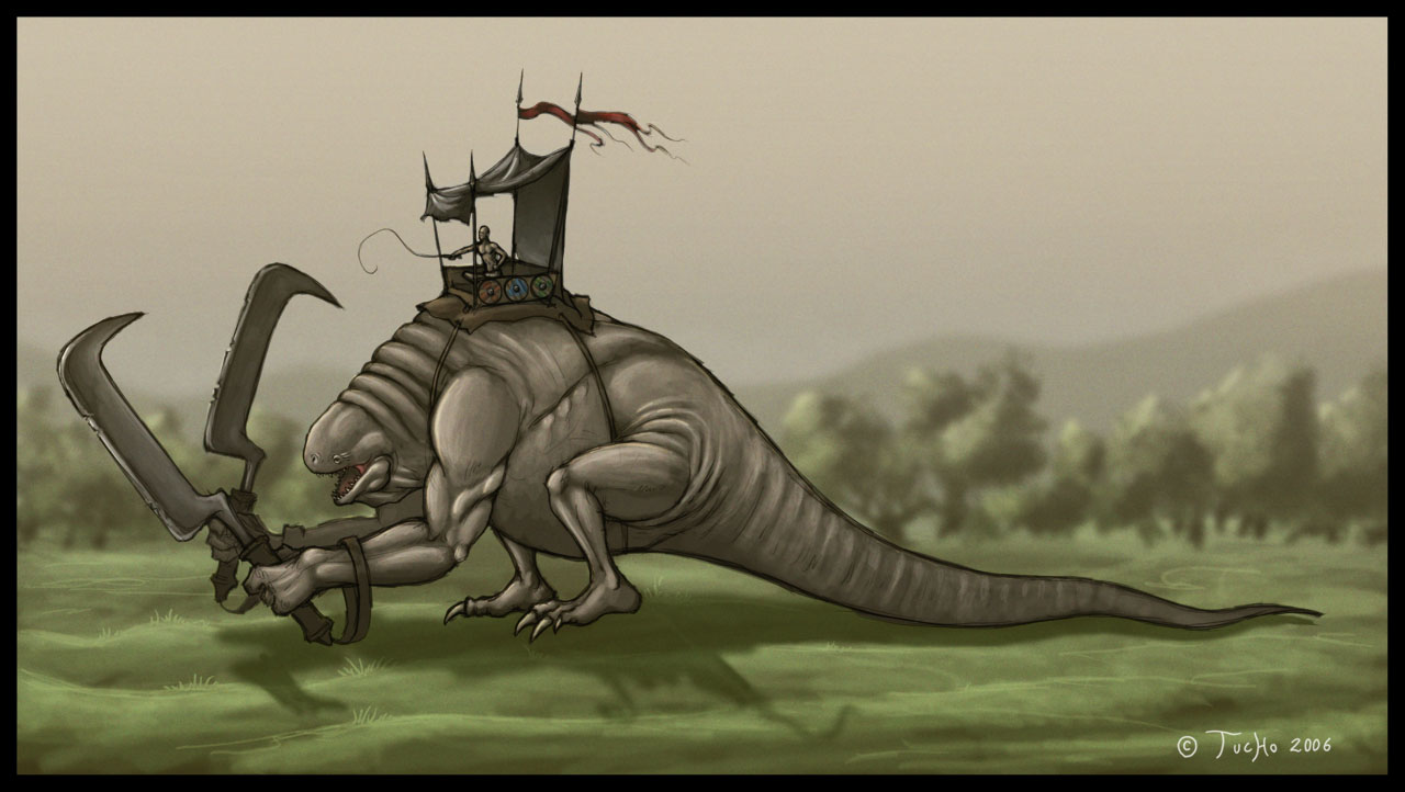 Hombre, Mars y Lochapowa, quizás sí he forzado demasiado las proporciones, ya me lo ha dicho más gente, pero sí que se pueden encontrar ejemplos en la naturaleza, por ejemplo, el therizinosaurus, del que te adjunto una imagen, o también muchas aves que tienen un cuerpo muy voluminoso y unas patas ridículas (claro que la función que ellas le dan a estas no son las mismas que una criatura completamente terrestre).