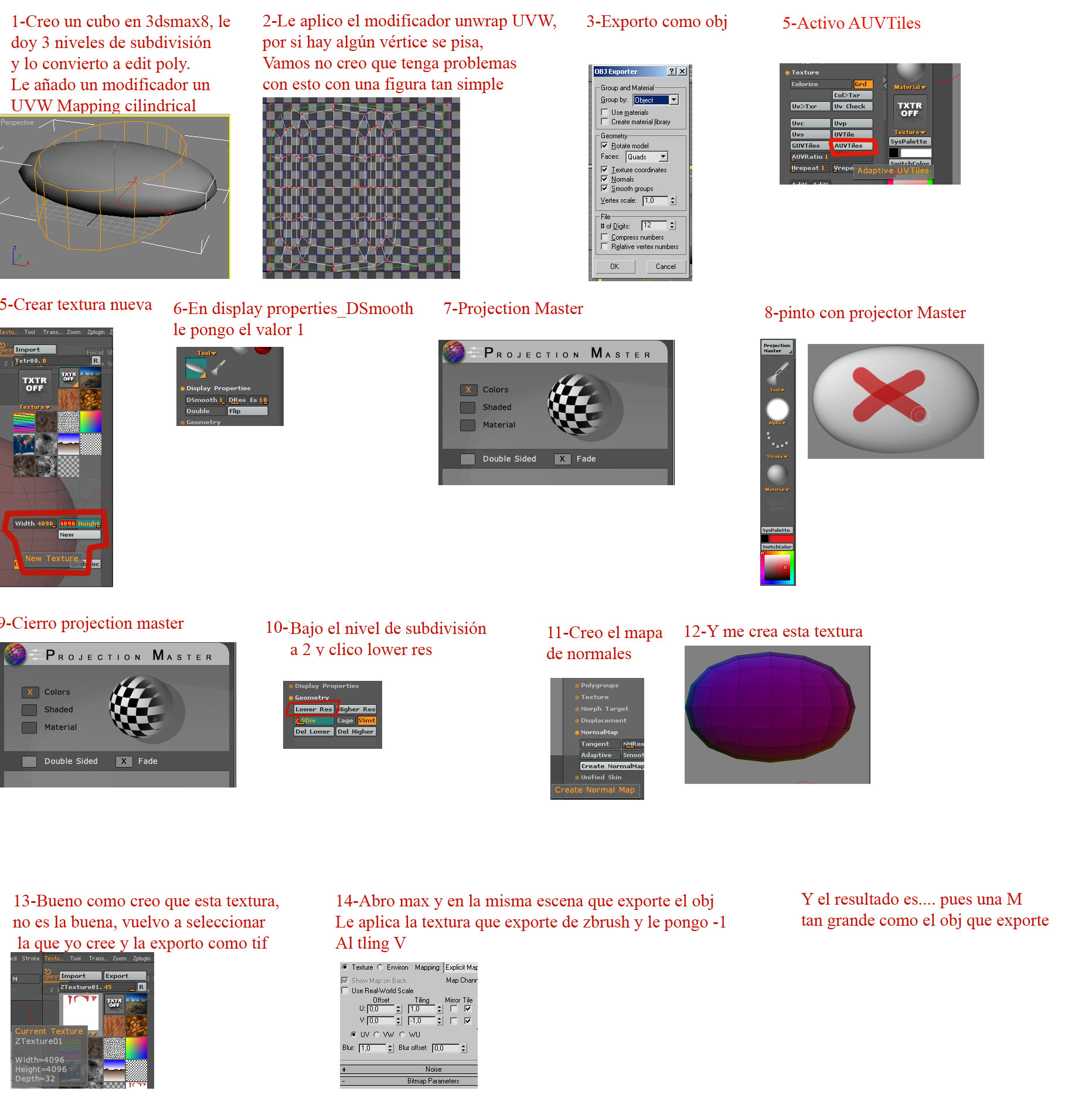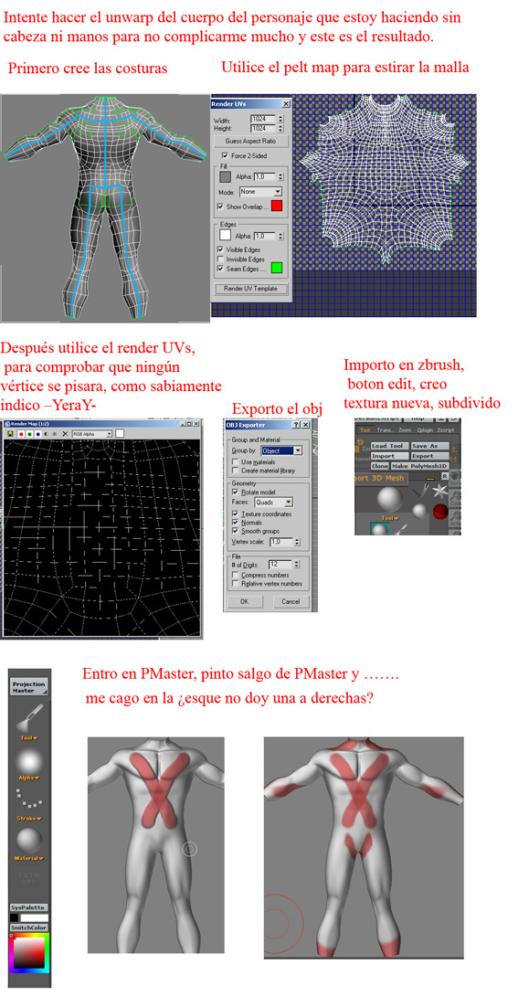 Si haces Unwrap en 3dsmax olvídate de poner ningún uvtiles ni uvsnada de ZBrush, saltate el paso 5, y el 6 no le veo utilidad.