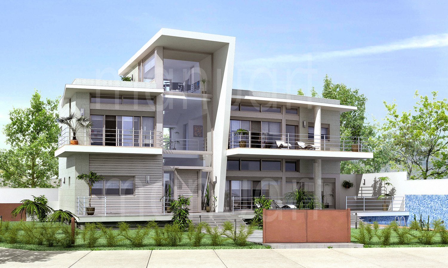 Qué tal Miguel, la vegetación son modelos Evermotion vol.24 pero son demasiado pesados, el césped es un Vray displacement, normalmente utilizo los Tree Storm están muy bien y son bastante configurables sobre todo si tienes varios árboles del mismo tipo y no quieres que se sean todos iguales y algunos Xfrog sobre todo los de la librería tropical y la houseplant. Saludos y gracias a todos por vuestras respuestas.