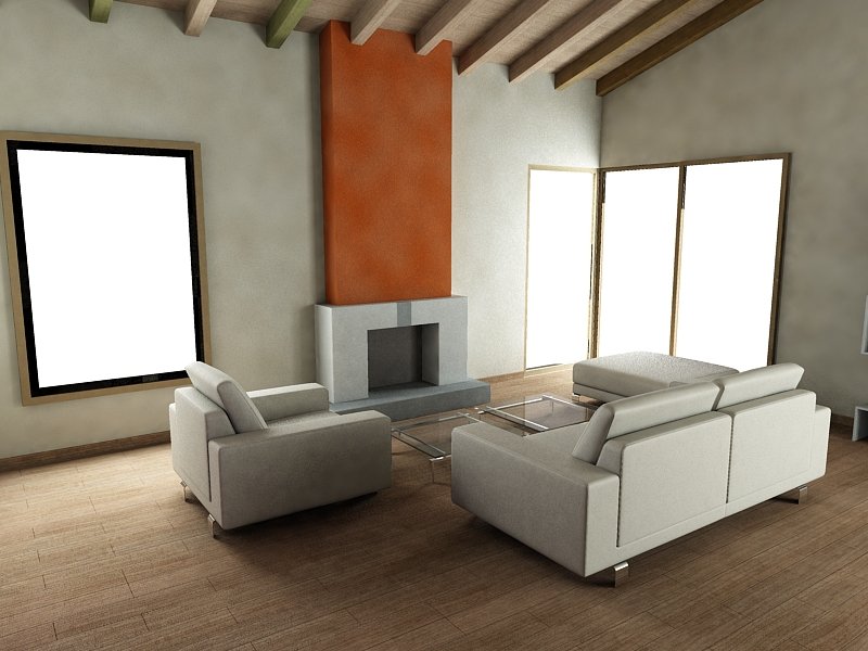 Hola de nuevo, después de la ayuda de p-s, Rufus y Mesh con algunos problemas en el Vray os envío la evolución de la vista del salón que estoy haciendo, una vez echa la estructura y teniendo la distribución clara creo que debería empezar por decorar y posteriormente incluir algún paisaje a través de las ventanas.