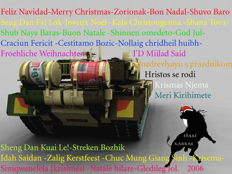 Emo, no te equivocas, la oruga si te fijas esta todavía en el azul wip que he usado, es decir sin texturizar, Epar, no sé si me halagas o me estas criticando, porque las maquetas en las que me vaso están tan auténticas o mejor que los originales, pásate por panzernet ( http://www.network54.com/forum/385039). O por lo contraio, y creo que van por ahí los tiros, supongo que, te refieres que el acabado es como de juguete. Pero ten en cuenta que no está acabado, no tiene bumps, no tiene especulares, no tiene un entorno, mira el resto de mis modelos acabados, y ya sé que no son nada del otro mundo, pero de juguete, te aseguro que no tienen pinta. De todas maneras, estoy abierto a nuevas tendencias en iluminación y texturizado, pero me tenéis que enseñar los que sabéis, nunca he presupuestomido de nada y no soy un maestro iluminando precisamente, ahí flaqueo del todo, pero gracias por tu aportación. Dime que le ves mal y dime cómo puedo corregirlo.