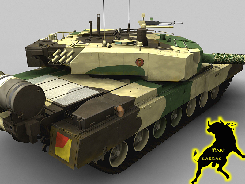 Después de éste texturizaré el Leopard 2E, lo tengo que mapear también, aunque la versión española es verde y como esta valdría, pero como haré la versión sueca y la griega, al tenerlo mapeado me salen gratis las tres. Ya que sólo tendría que cambiarle un color o dos en el Adobe Photoshop.