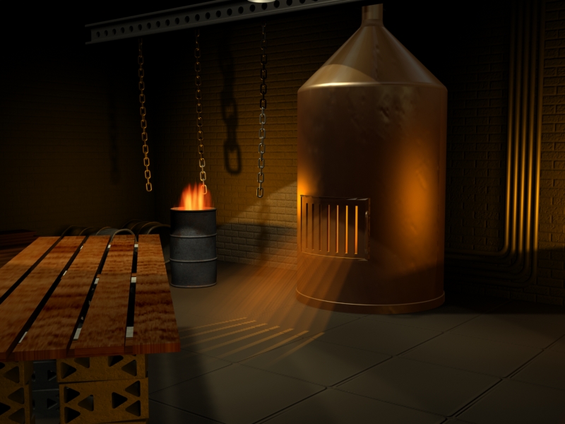 Si, en realidad la idea es que poco a poco se transforme en una fabrica, hoy por hoy es más una caldera, pero gracias a los distintos consejos iré modificando la escena para que tome mayor realismo. Gracias y espero recibir más consejos.