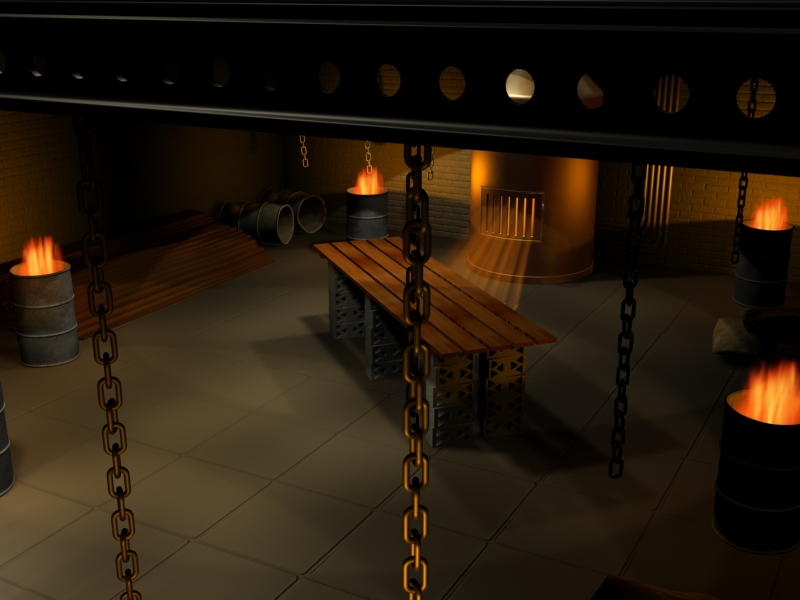 La idea no está mal y la realización tampoco está mal del todo, aunque, para mí gusto, todo es demasiado simple, y la iluminación hace que sea todo muy plano. Además, da sensación de pequeñez, cuando una fábrica no es precisamente. Mejoraría el fuego, ya que se nota mucho que no es real además de que todos son iguales. La texturización la veo demasiado simple, pero sin ningún fallo remarcable, excetuando el suelo. Queda mucho que pulir, pero tampoco está muy mal. Un saludo.