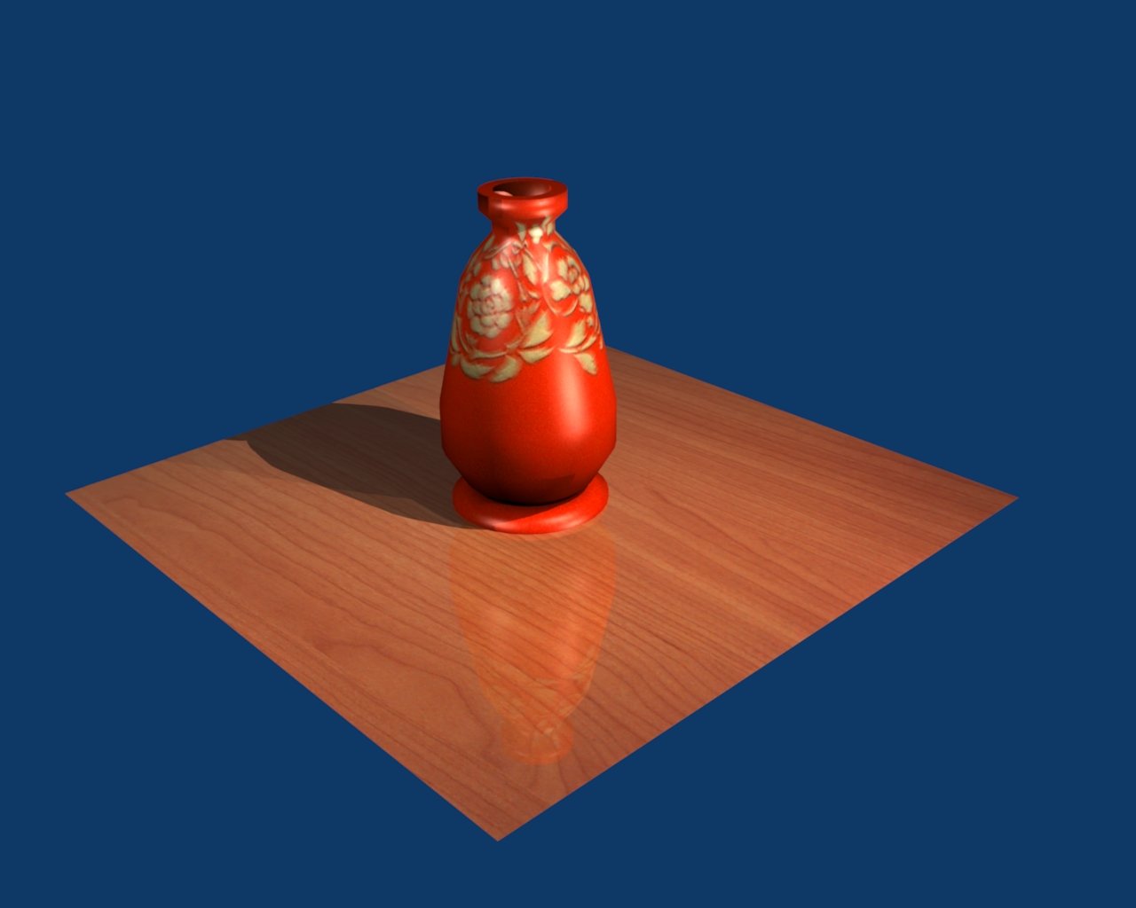 Pues para ser tu primer trabajo lo veo muy bien pero claro tiene sus fallos por ejemplo, personalmente, a la madera le metería un poco de Bump (mapa de relieve) para acentuar las vetas de la madera, no sé porque utilizas dos focos (viendo que los dos están casi casi en el mismo sitio (por las sombras digo)) e intenta buscar cómo hacer que la sombra sea un poco más suave.