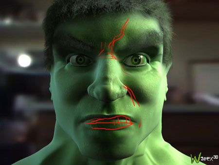 Pues eso, aunque le falto el pelo y cejas, pero al rato se los pongo y es que no me aguanto las ganas de mostrarles el resultado final el render está con Vray. Para los que no saben el terminado el Hulk ya saben que las sugerencias aún son bienvenidas.