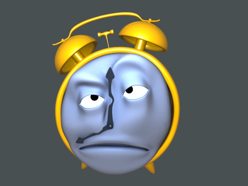 Aquí publico mi último quiebra-cabezas. Estoy pensando en hacer un mini-corto sobre el despertar de un despertador. ¿la hora? Las 8:00, como no. Tengo el personaje riggeado y le he hecho esta postura para todos vosotros. Me gustaría saber que os parece, le faltan detalles. Gracias.