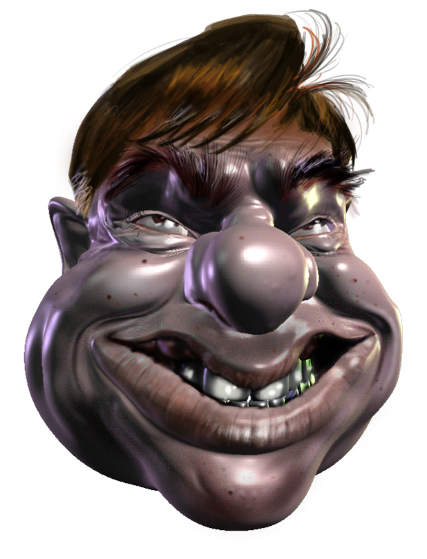 Bueno, ya veis perfectamente que solo es una prueba. La realicé en una hora. La base la hice en XSI, ni siquiera me molesté en arreglar la unión de las dos mitades de la cabeza.