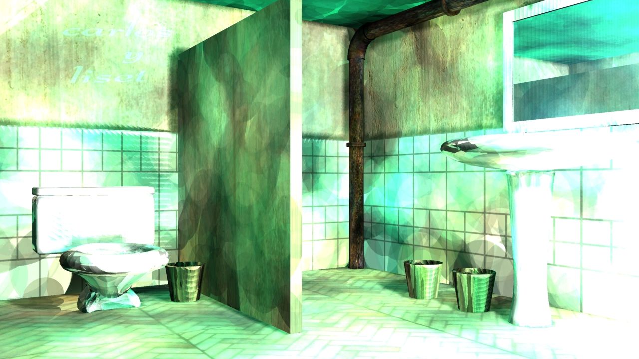 Vaya bueno si me he dado cuenta de todas las fallas que me edicen, la escena no la tengo estuve buscando, pero no lo encuentro ya que quería mostrarles un wireframe, pero bueno, no hay escala en esta escena, y como les digo fue mi primer trabajo donde recién estaba aprendiendo muchas cosas aún no sabía muy bien de modelado y casi nada de etextura, pero ahí esta, los verdes, bueno como quería hacer un baño sucio, se me ocurrió manchar un poco la textura de las paredes y cuando lo renderice con Mental Ray (ojo que no sabía usar muy bien) Photoshop me salió esas marcas en las paredes y casi en toda la escena, y Adobe Photoshop ahí esta un saludsos gracias por las críticas.