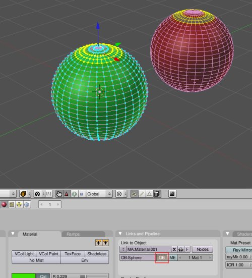 Estas dos esferas están clonadas, pero los materiales son distintos porque están asociados al objeto.
