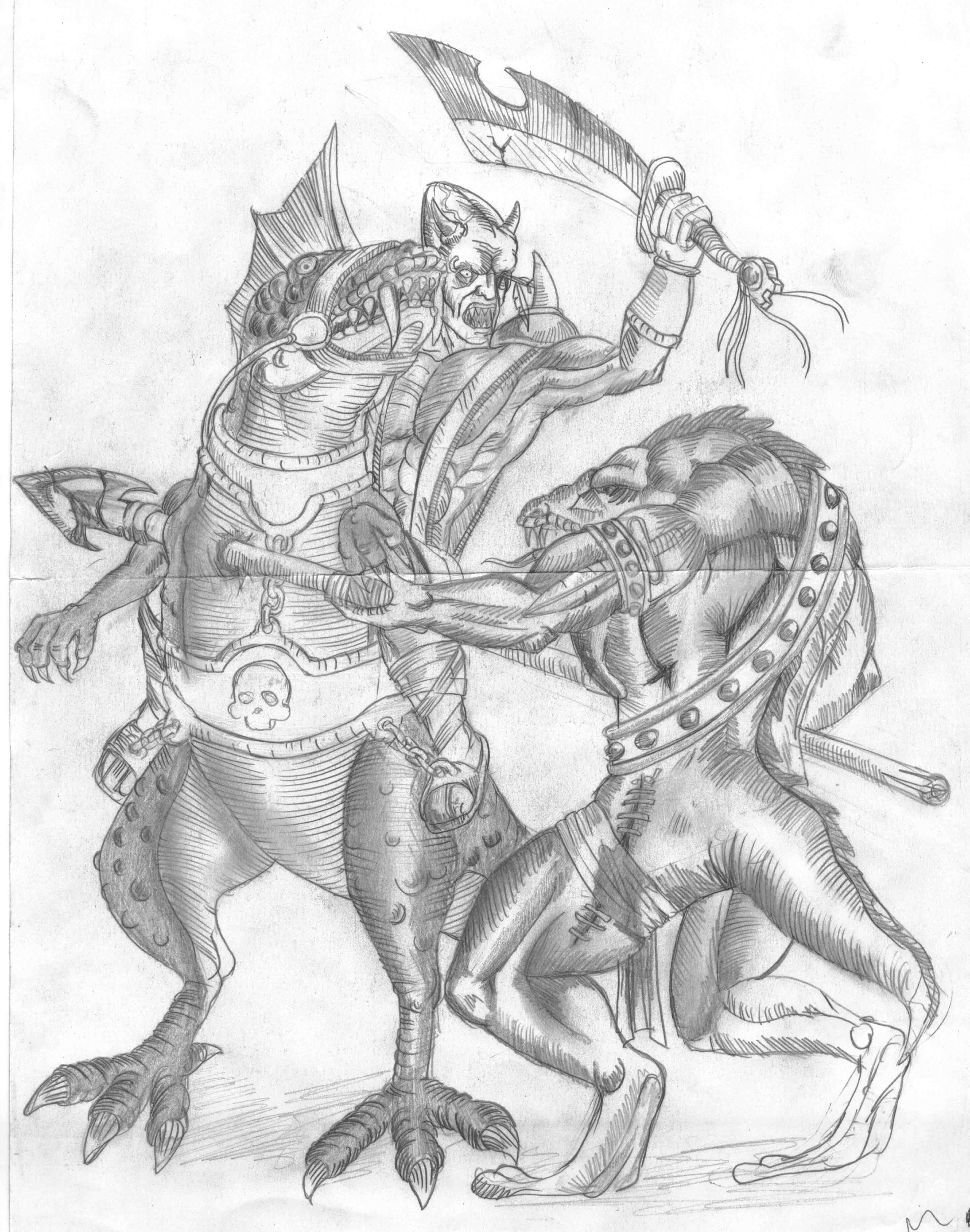 ¿Y este demonio tan chulo? ¿esto no era un lagarto? He debido perder el hilo del hilo. Me encanta la imagen con los dientes apretados. Que dientes más molones. Muy bueno.