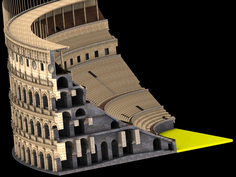 Realmente el único mérito que tiene el modelo es que las medidas son exactas. Estuve casi 4 meses documentándome y escribiendo a arqueologos, maquetistas, para sacar hasta el último dato que se tenía sobre el coliseo.