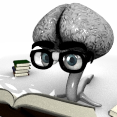 No sé, a mi el Shader del cerebro no me gusta nada. En lugar de parecer agrietado, es como si estuviera lleno de venas. Además, en lugar de esos brazos, creo que le quedarían mucho mejor otros un poco más humanizados, con manos(que podrían estar pasando página en la escena), y más cercanos a la cabeza. En conjunto la imagen esta simpática. Saludos.