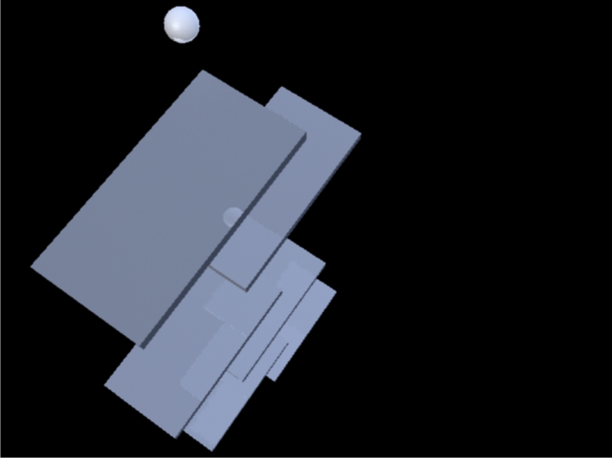Hacer que la esfera sea afectada por la una fuerza de gravedad, lo que le da movimiento, esta a su vez hace reaccionar las estaciones con las que choca y las hace girar. (antes de ver el tutorial creía que para hacer algo así tendría que ir frame a frame creando todos los movimientos).