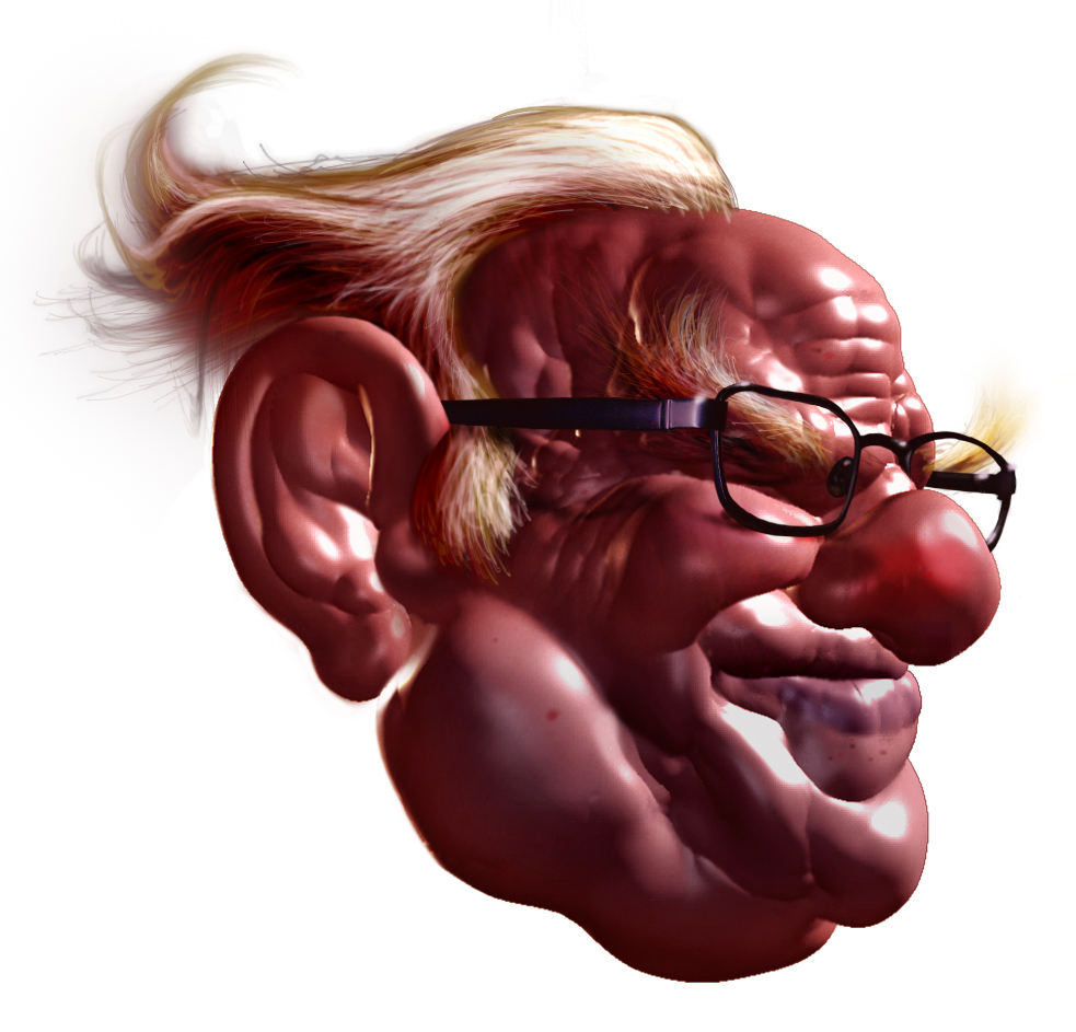Hola, envío una caricatura de warren bufett. He utilizado XSI, ZBrush y Adobe Photoshop.
