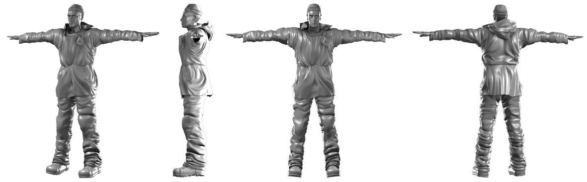 Pues yo por llevar la contraria te diré que, aunque me gusta el modelo me parece que la ropa tiene demasiados pliegues, todo depende del material del que este hecho, pero por la pinta del modelo parece de esos trajes de aguas que llevan los marineros, las arrugas no son tan profundas y la ropa tiene ángulos más cerrados, eso siguiendo el realismo, pero como modelo estilizado sí que me gusta ese montón de pliegues en la ropa.