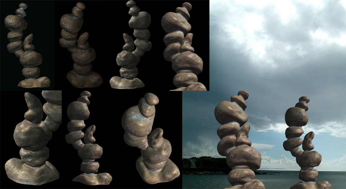 Gracias Birkov, este fin de semana haré pruebas con estas piedras. He comenzado otro modelado en XSI de base, para seguir haciendo pruebas con zbrsuh: http://cornelius3d.blogspot.com/.