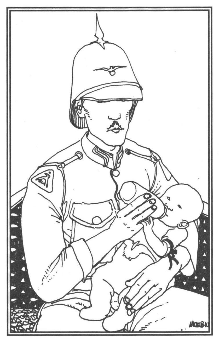 Estoy buscando alguna imagen del mayor, el mítico personaje de Moebius del Garage hermético. No encuentro ninguna imagen buena para usarla en un concept.