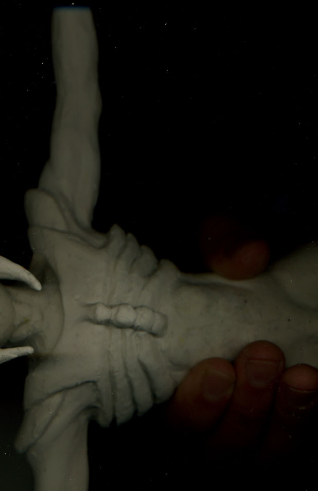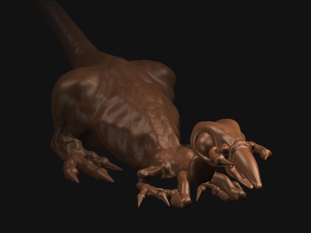 El bicho que estoy haciendo ha cambiado un poco ya no lo quiero de agua más bien de tierra, estas imágenes son de un bicho que he modelado en plastilina, y las imágenes son del escáner, me van a servir de referencia más el modelo que las imágenes.