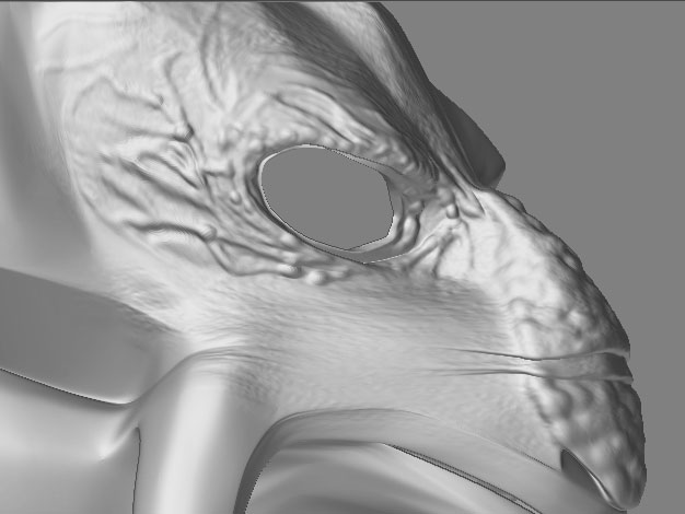 Por ahora me conformo con poder ponerle plumas al modelo o pintarlas sobre un render ya que el bicho caza camuflándose y sólo ataca cuando tiene una presa a la vista.