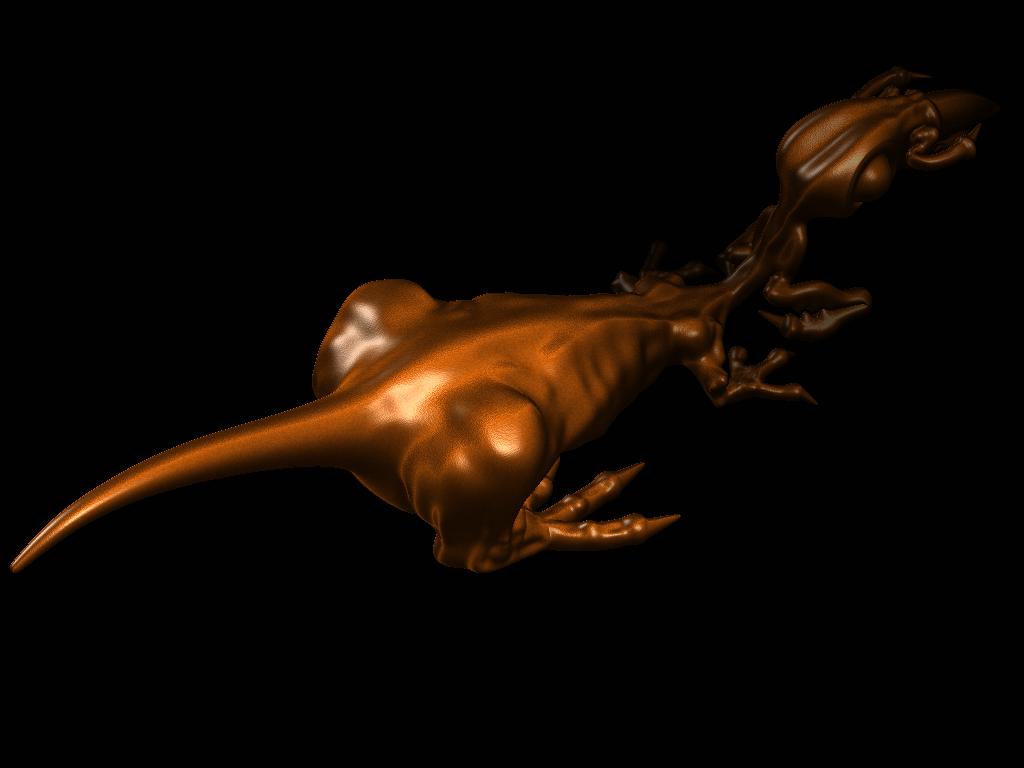 También me gustaría poder sacar un render del bicho acoplado en un árbol a la espera de una presa, pero para eso necesito rigearlo y darle posturas o sea que puedo tardar meses.