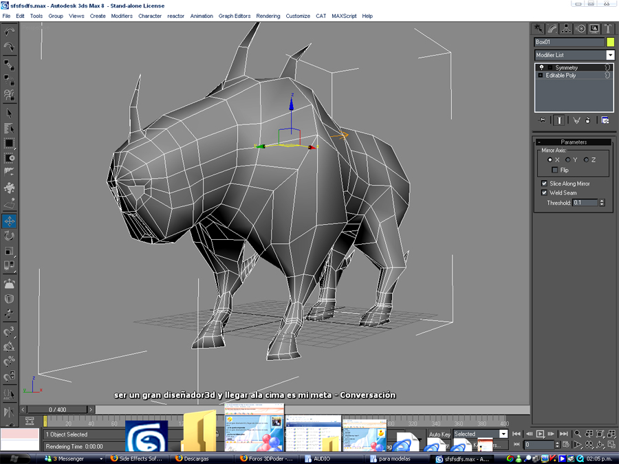 Ahora tengo un problema (ya estábatardando) resultaqueuno de los dedos de las patas traseras, al pasarlo a max, interpreta las caras al revés, o sea que el dedo aparece cóncavo y sin iluminar. Vaya movida.